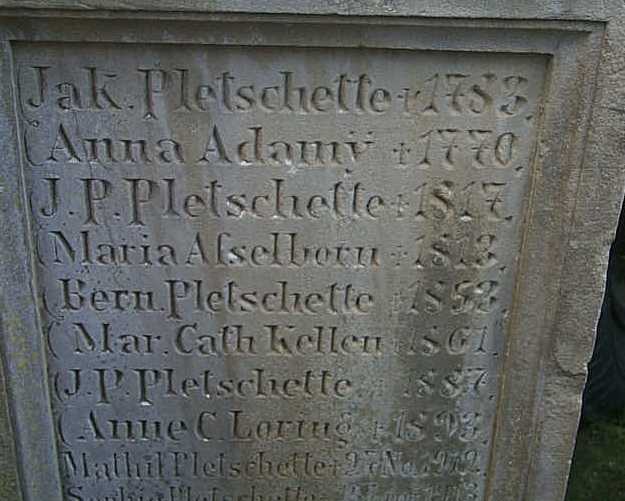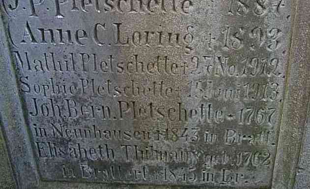This is the text we saw on the family Pletschette Gravestone